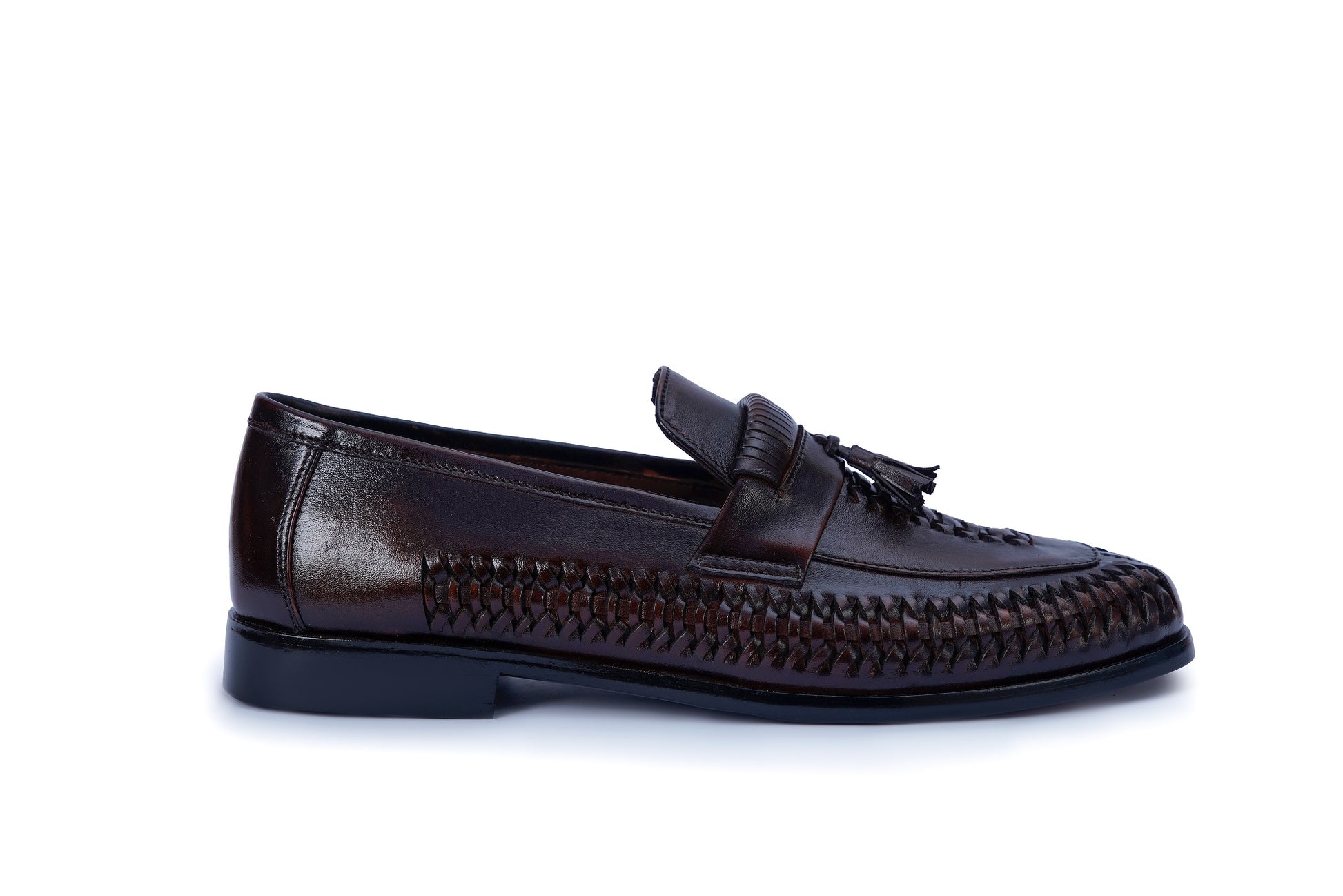 Enhance your style with these men’s brown handcrafted leather loafers, designed for a timeless and elegant look. Featuring a detailed stitched pattern on the upper, these loafers reflect fine craftsmanship and premium quality. The rich brown tone makes them perfect for formal wear, office use, and smart-casual outfits.