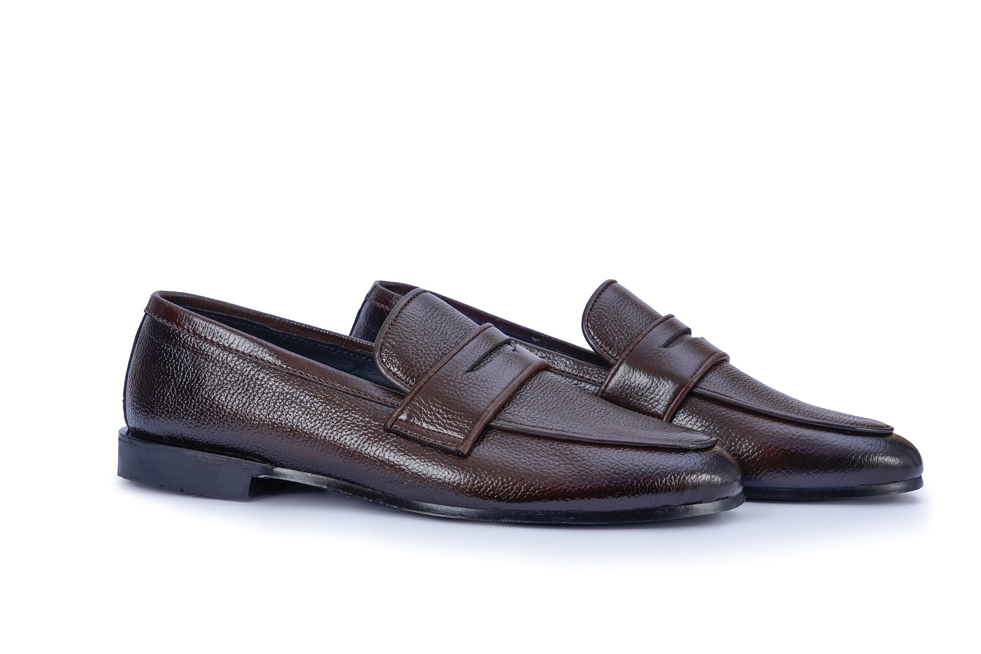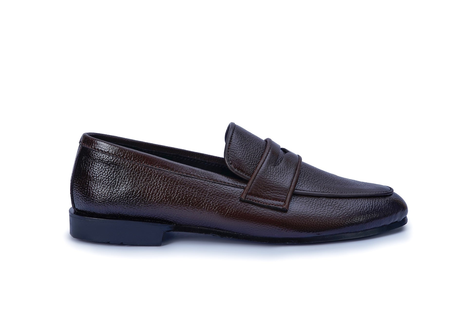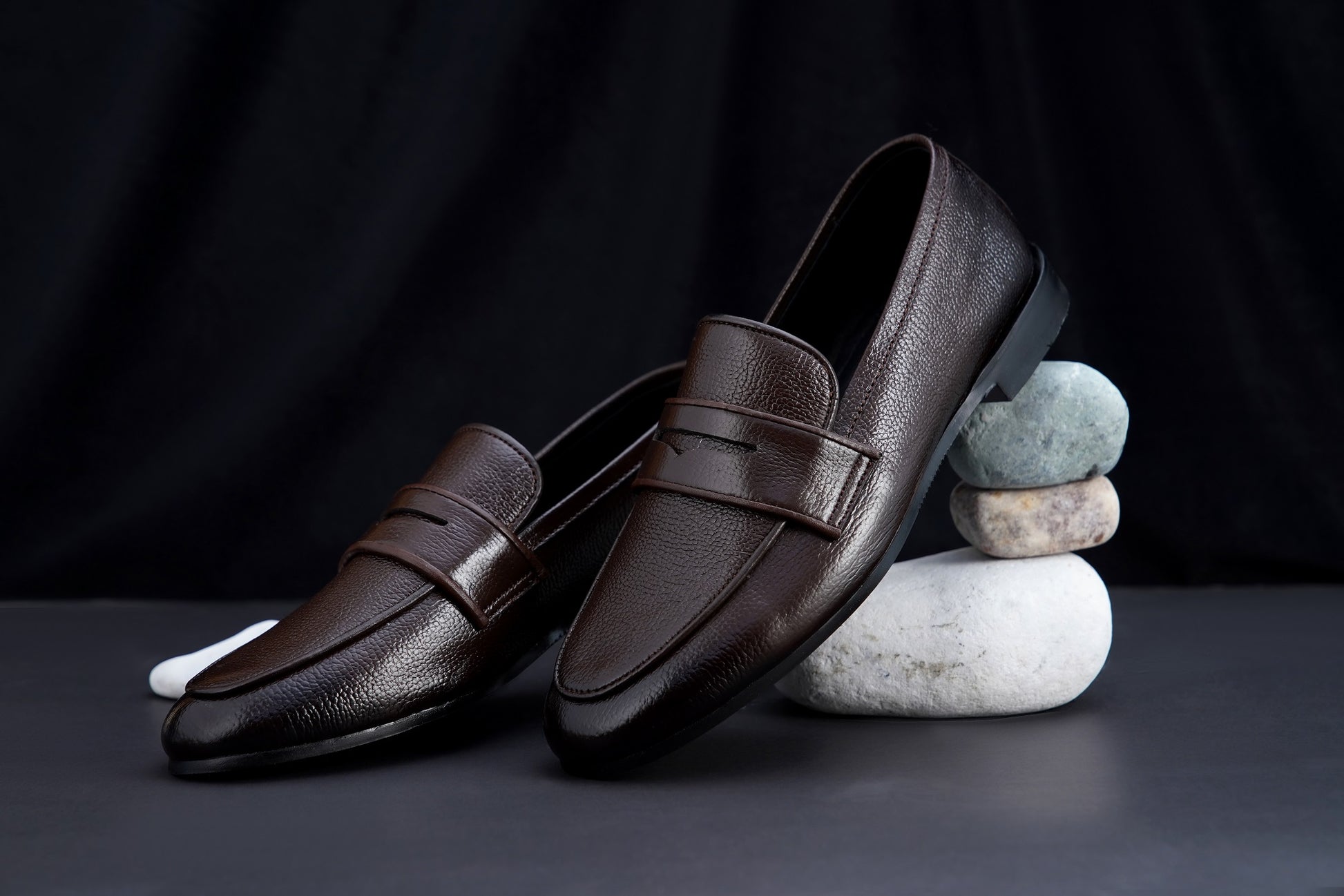 Elegant black leather penny loafers with a smooth finish and timeless design. Perfect for office wear, business meetings, and formal occasions. Comfortable slip-on style with a durable sole for daily use.